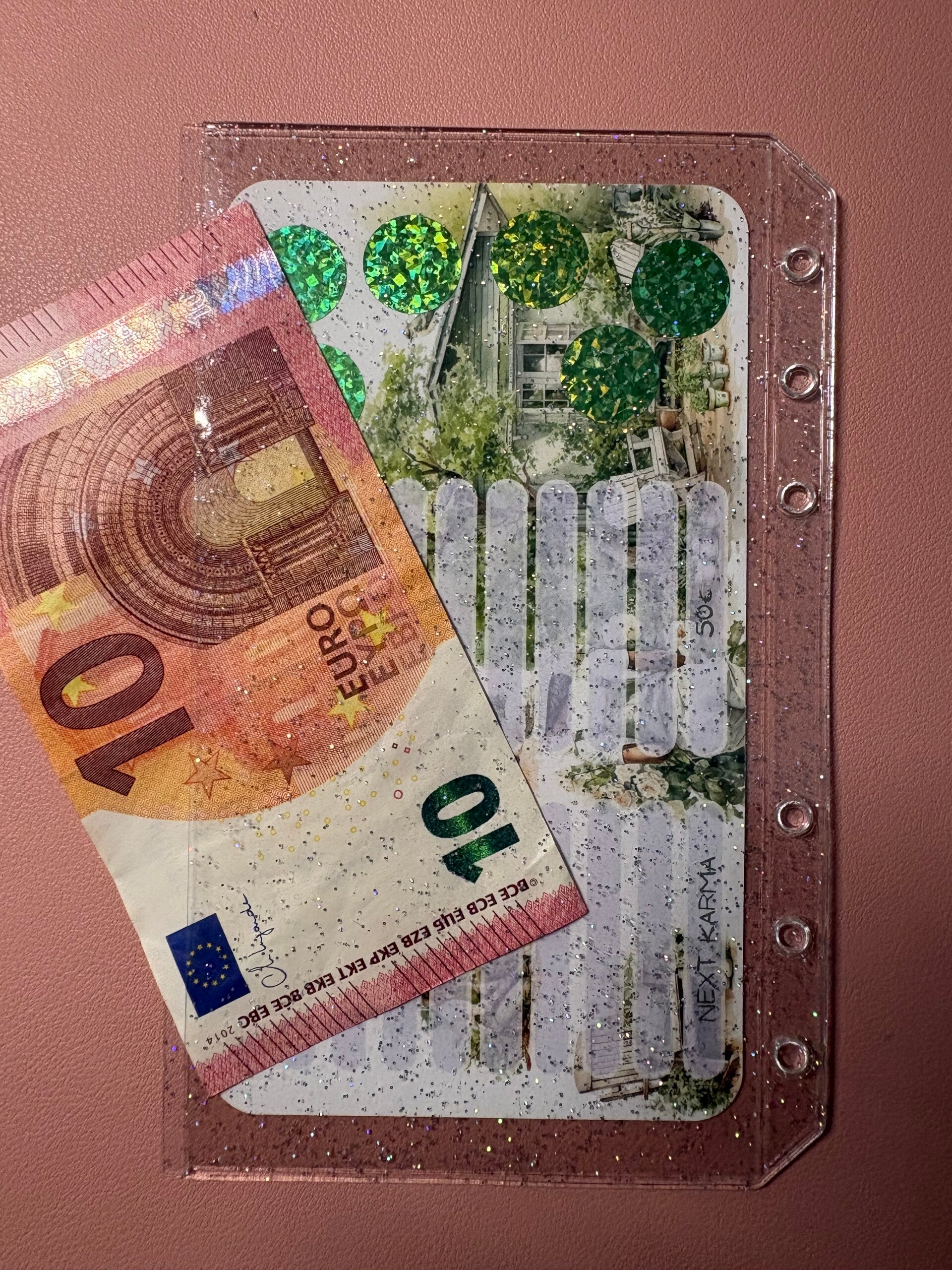A6 Double Glitzer Hüllen ohne Druckverschluss mit einem Fach für deine Challenge und auf der Rückseite befindet sich ein Fach für dein Geld!