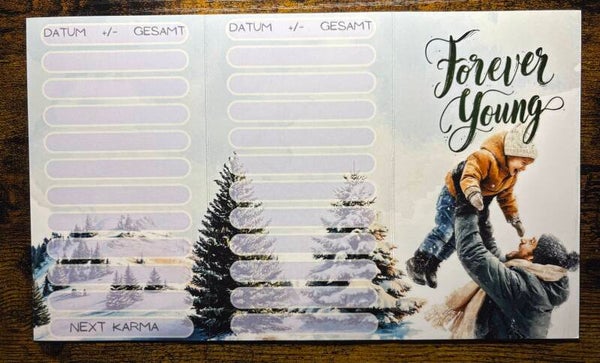 Gedruckt wurde in der Größe 255mm x 150mm auf 300 Gramm Papier.